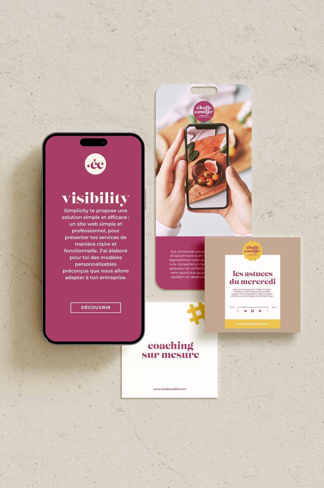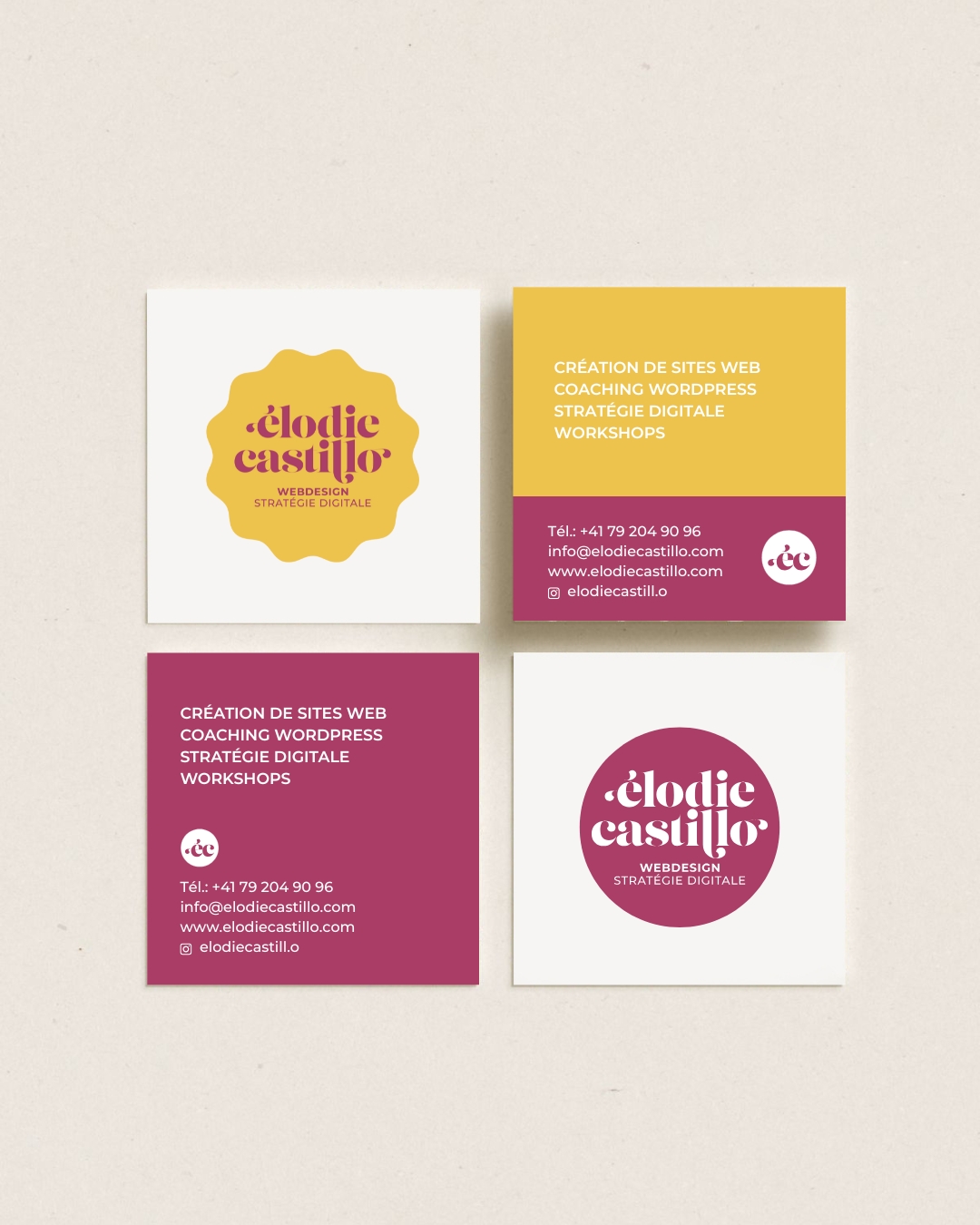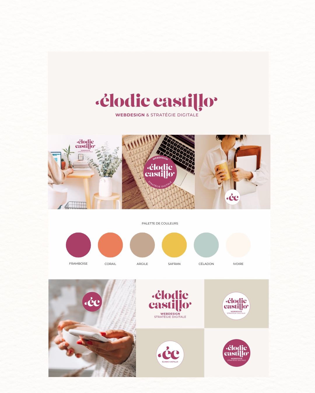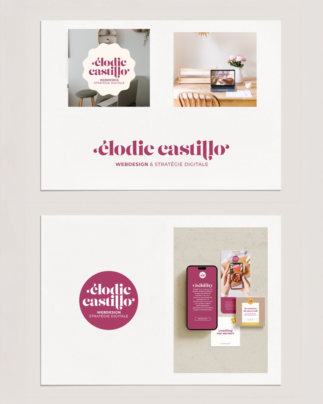 Dans le cadre de l’évolution de son activité, Elodie Castillo souhaitait repositionner et rafraîchir son identité visuelle existante afin qu’elle reflète plus justement son univers, son style et ses ambitions en stratégie digitale. Dès les premiers échanges, ses besoins et attentes ont été clairement définis pour poser une direction créative cohérente.